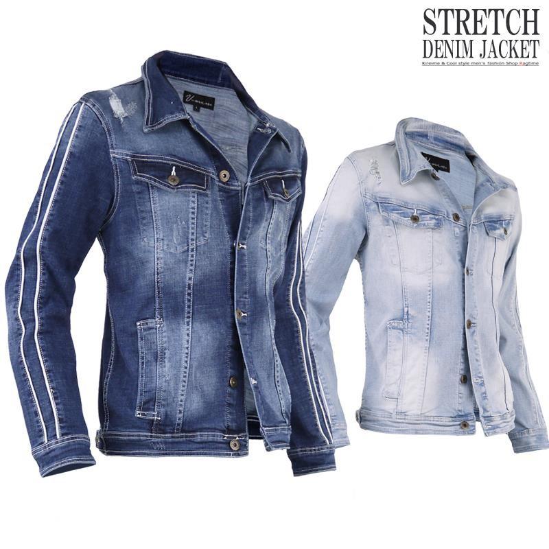 Gジャン メンズ デニムジャケット ストレッチデニム 袖ライン ストレッチ素材 ダメージ加工 V0501 V05 01 Ragtime 通販 Yahoo ショッピング